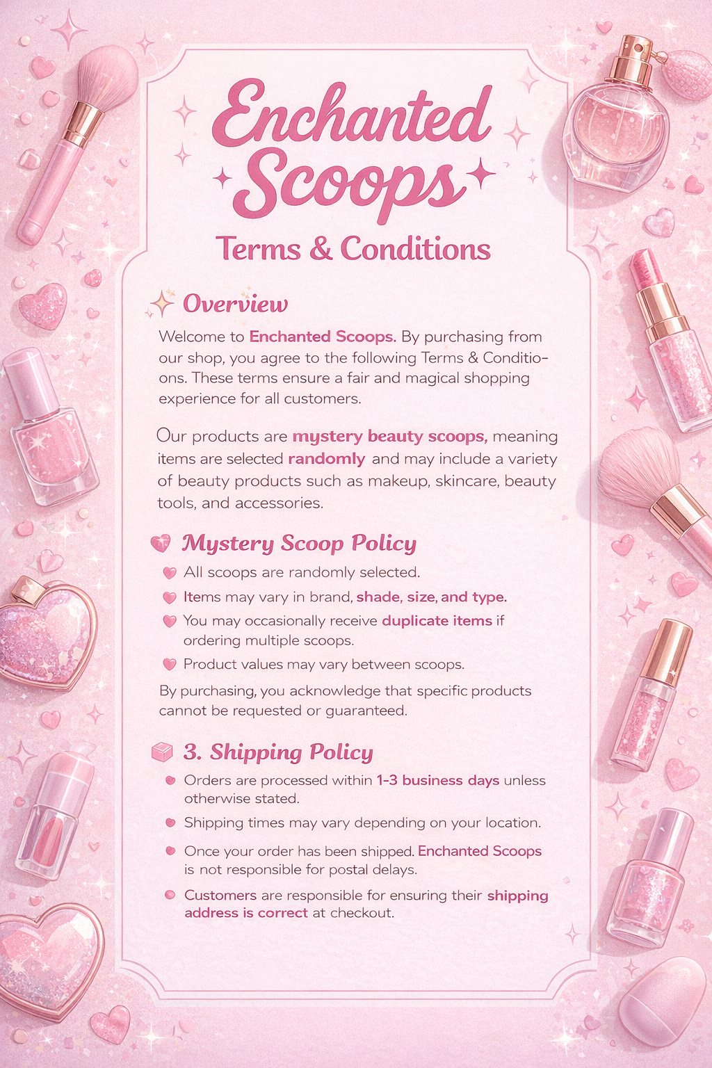 At Enchanted Scoops, we believe shopping should feel magical. That’s why we focus on creating mystery scoops that bring joy, excitement, and a little bit of sparkle to your day. Whether you’re treating yourself, shopping with friends, or looking for a unique gift, our scoops are perfect for anyone who loves surprises and cute treasures.